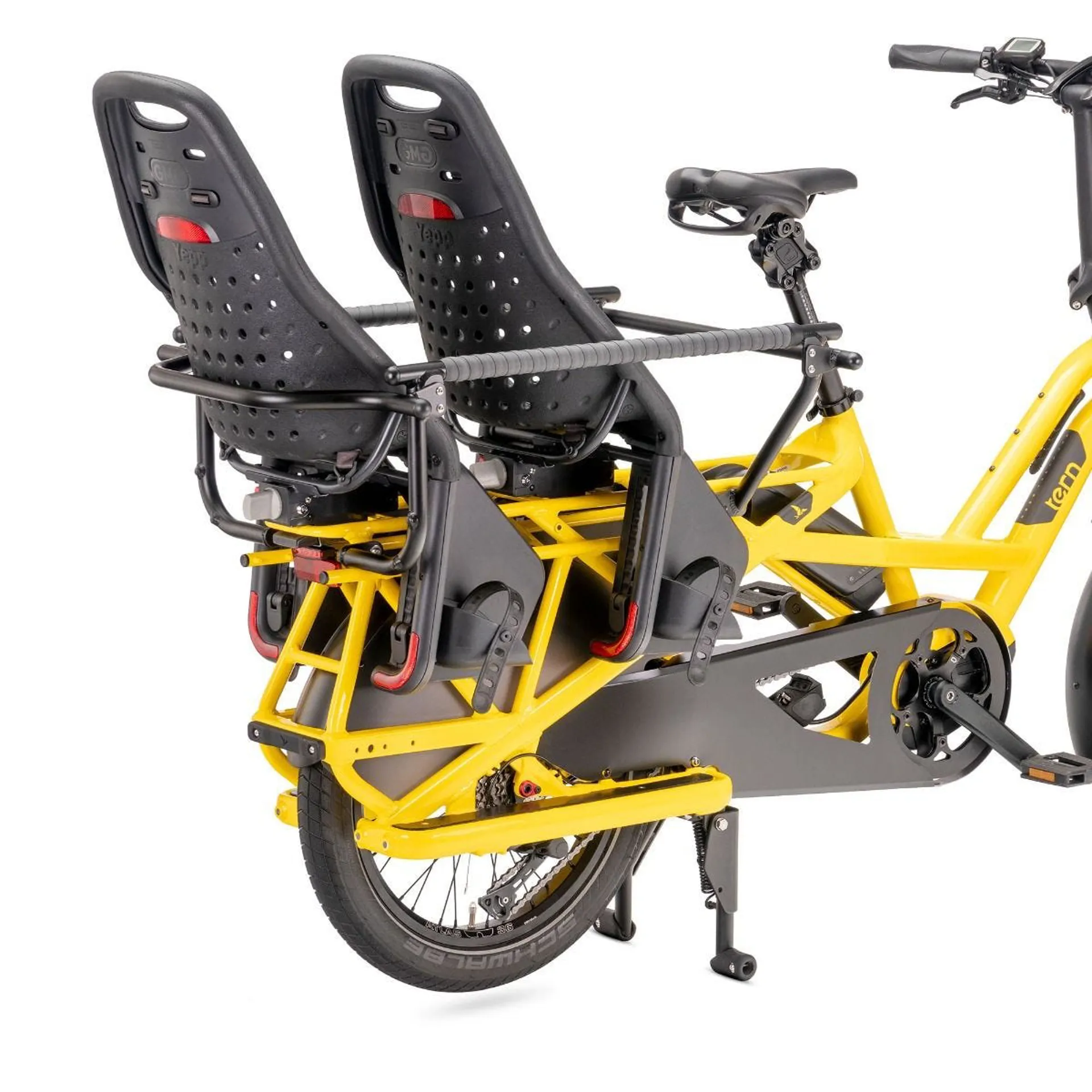 Use it with the included seatpad and backrest to create a comfy and protected space for two kids. Swap out the seatpad for a 600 mm x 400 Eurocrate and it becomes a heavy-duty grocery hauler. The Child Seat Expansion Bar supports up to two child seats for younger kids, allowing you to mix and match seating configurations as your kids grow from toddlers to 10-year-olds. It's more fun than a car seat any day.