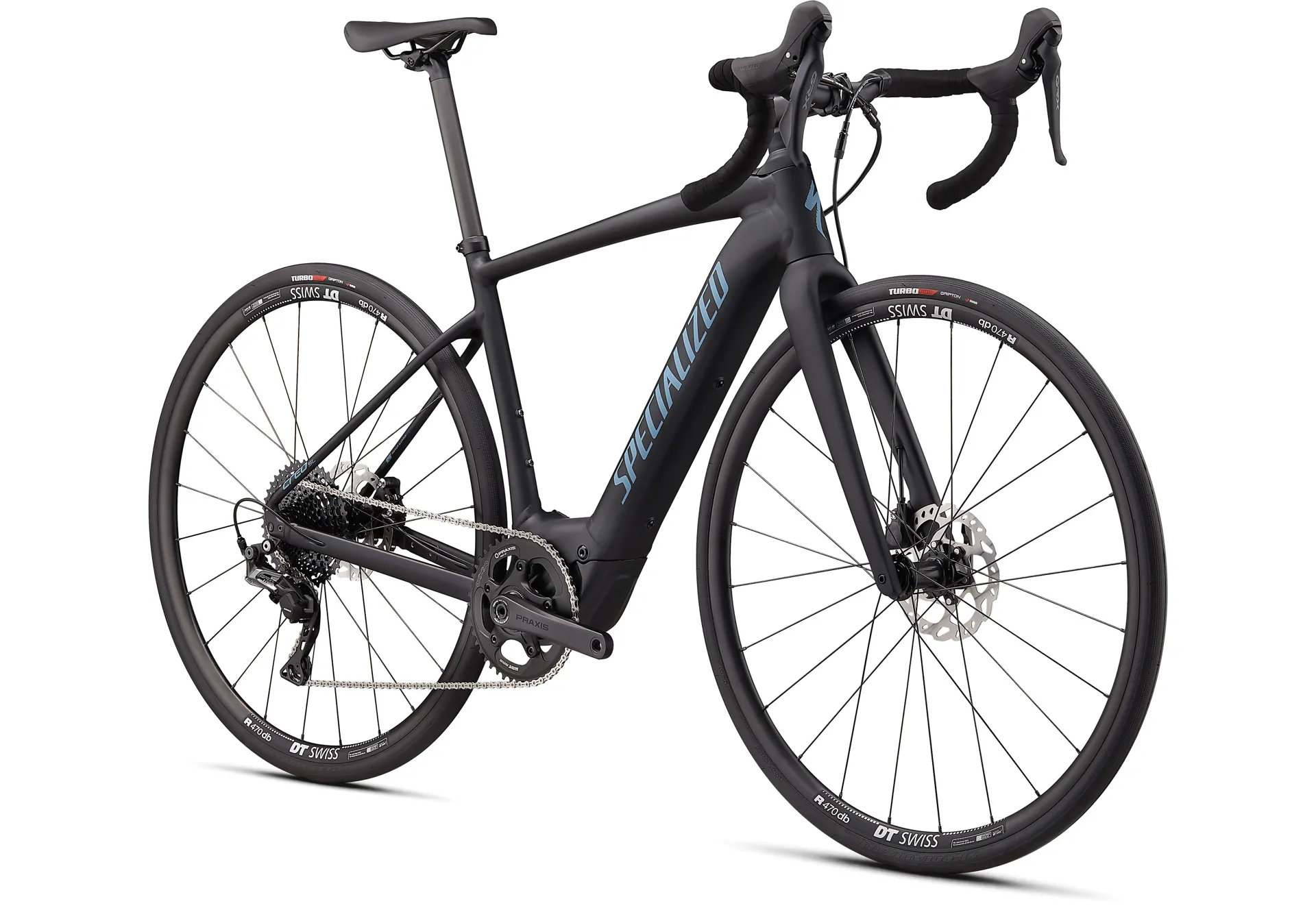 The turbo creo sl e5 Comp features an e5 premium aluminum frame and a future shock 1.5. For the spec they included a 1x Shimano grx group to take on shifting and braking duties while DT r470 boost wheels get wrapped in 28mm turbo Pro tires to keep you rolling worry-free. And for the saddle you'll find that the fan-favorite body geometry power Sport provides plenty of comfort.