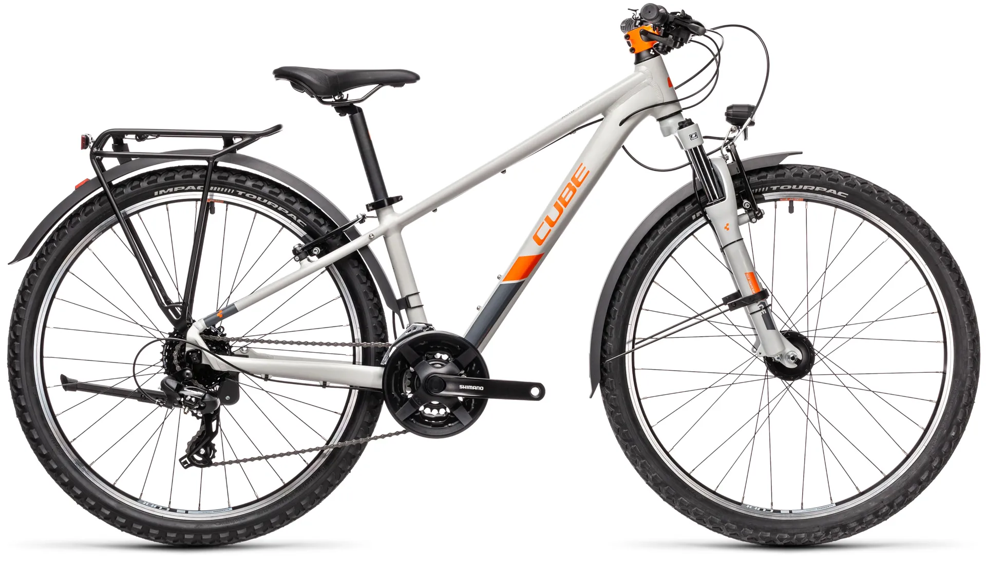 With its included mudguards, lighting system and kickstand, it's fully equipped for everything from the streets of your neighbourhood to family trail expeditions.The Suntour suspension fork helps keep the rubber side down with added comfort and control, while Shimano's easy-shifting 24-speed gears have the range to help your youngster conquer any climb. Where will it take them next?