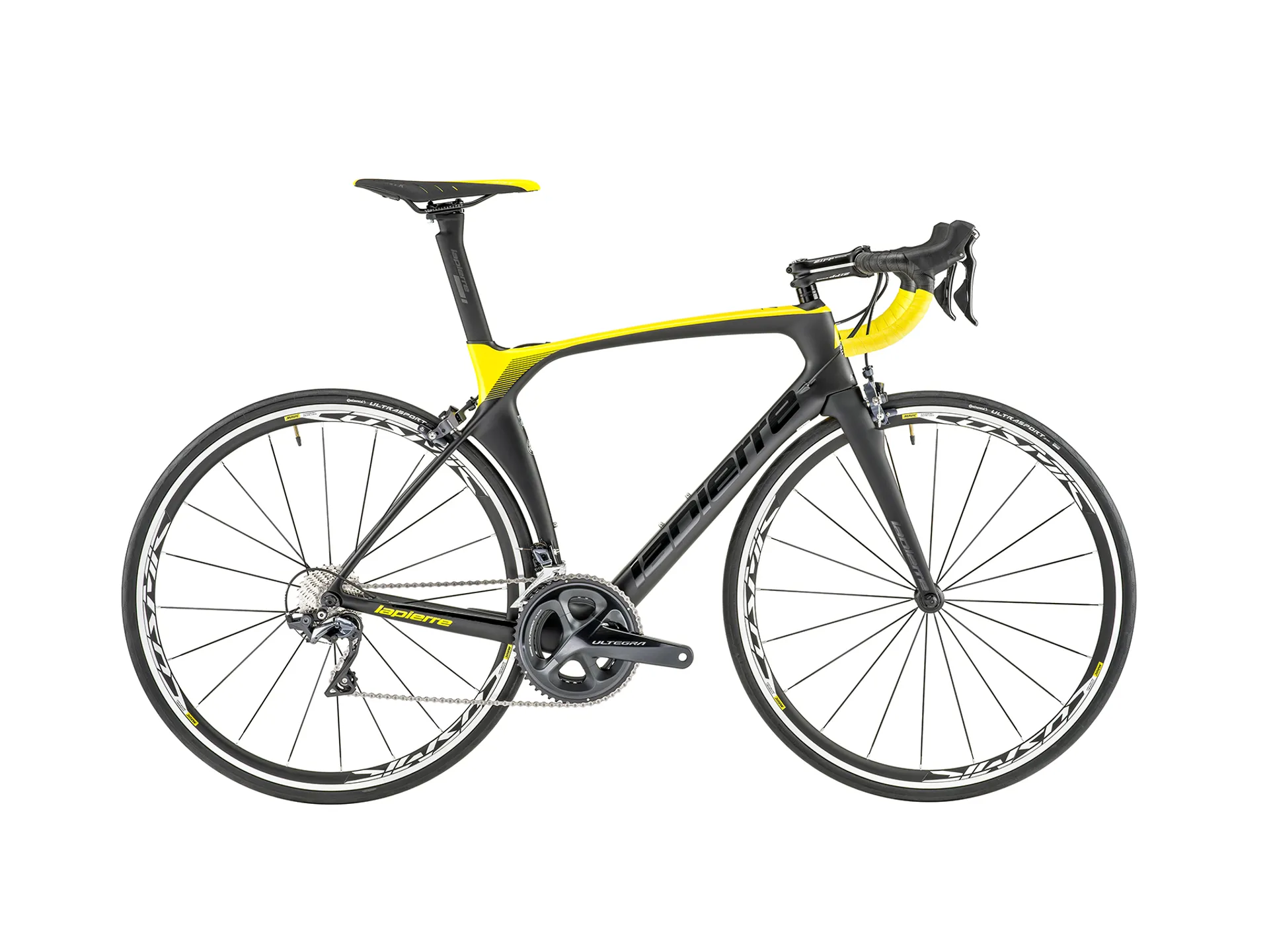 Frame : AIRCODE SL CARBON Fork : AIRCODE 100% CARBON Headset : FSA 1"1/8 - 1"1/4 ORBIT C-33 44E Bottom bracket : SHIMANO PRESSFIT SMBB7141B Crankset : SHIMANO ULTEGRA FC-R8000, 52X36T 170mm(XS,S) 172.5mm(M), 175mm(L,XL) Stem : ZIPP SERVICE COURSE B1 318 6° 31,8mm 90mm(XS,S) 100mm(M) 110mm(L) 120mm(XL) Seatpost : LAPIERRE AERO CARBON Handlebar : ZIPP SC80 40cm(XS,S) 42cm(M,L) 44cm(XL) Front derailleur : SHIMANO ULTEGRA FD-R8000F Rear derailleur : SHIMANO ULTEGRA RD-R8000GS, 11s Brakes : SHIMANO ULTEGRA BR-R8010 DIRECTMOUNT Shifters : SHIMANO ULTEGRA ST-R8000 Saddle : FIZIK ARIONE R5 Wheel : MAVIC COSMIC ELITE Sprocket : SHIMANO 105 CS-R7000 11s 11-28T Tires : CONTINENTAL Ultra Sport 2 SL 700X25 Weight : 8 Size : XS, S, M, L, XL